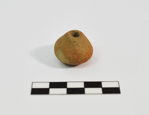 Fuseruola di forma biconica con foro passante verticale, centrale, base inferiore leggermente concava. Impasto, depurato, bruno-arancio.