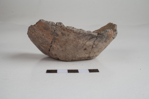 frammento di fondo con base di appoggio piana; impasto grossolano, superfici lisciate di colore dal grigio allarancio