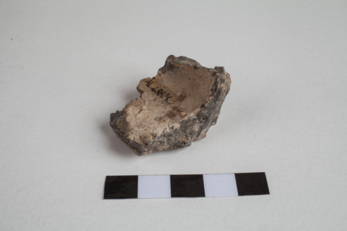 frammento di fondo con base di appoggio piana; impasto semifine, superfici lisciate di colore grigio-beige (esterna) e beige (interna)