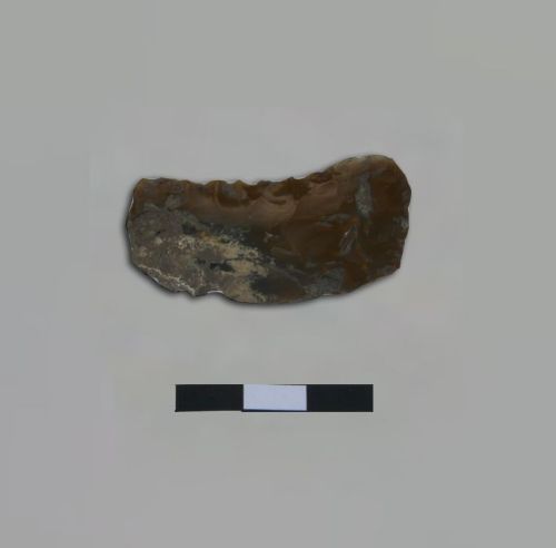 elemento di falcetto triangolare a ritocco piatto bifacciale con usura stralucida