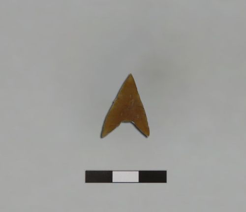 punta di freccia a ritocco piatto bifacciale, a base semplice concava ed alette triangolari