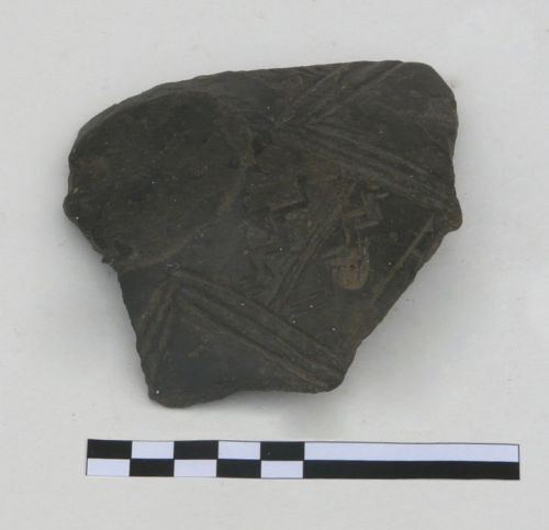 fondo piatto ombelicato con attacco di vasca, con decorazione cruciforme a linee incise (tipo Barche di Solferino)