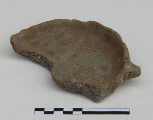 teglia con presa a linguetta e decorazione cruciforme a cordoni plastici sul fondo (interna)