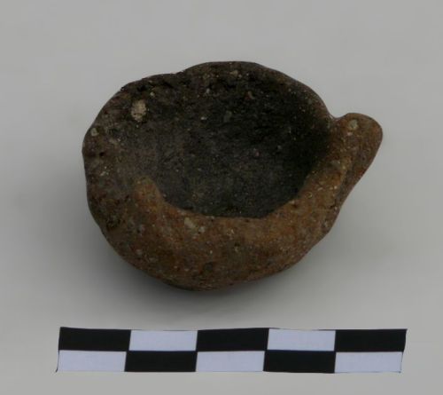 crogiolo a forma di cucchiaio subcircolare a profilo convesso, profondo, manico pieno