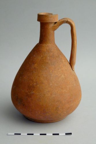 orlo a fascia (Conspectus K 17/18), collo cilindrico, corpo piriforme (Conspectus K b), bassissimo piede ad anello molto largo, ansa nastriforme costolata impostata sotto l'orlo e sulla spalla