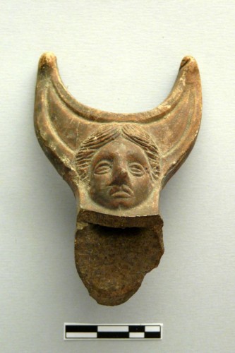 ansa plastica, con riflettore semilunato, configurata a volto femminile