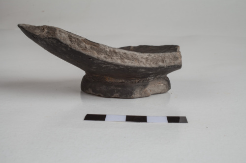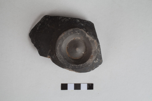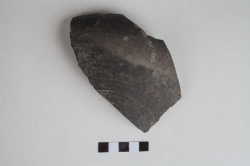 frammento di orlo diritto con labbro assottigliato pertinente ad una coppa; piede ad anello; impasto depurato di colore grigio, superfici lucidate a stecca