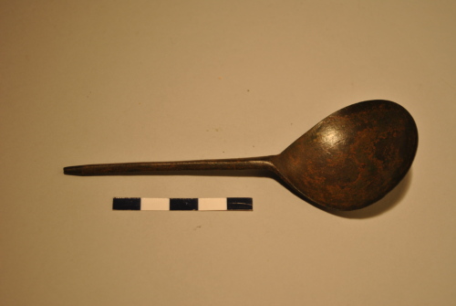 Cucchiaio con conca tondeggiante molto incurvata. Stelo poligonale frammentato.