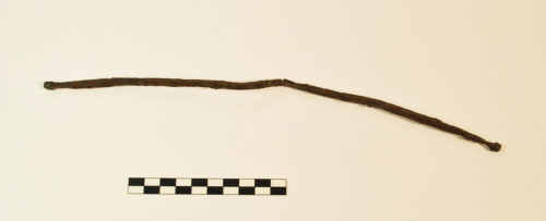 Verga a sezione quadrangolare con estremità ingrossate a bottoncino con lati poligonali.