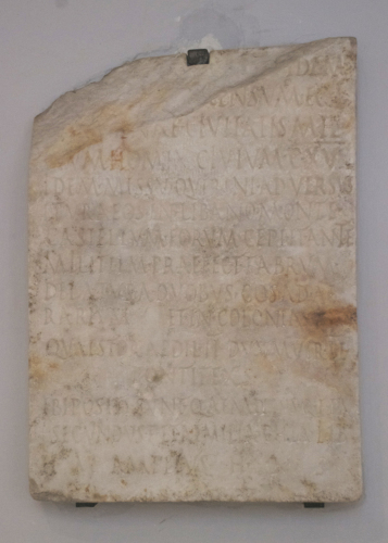 - NOTIZIE STORICO CRITICHE L'iscrizione, quando si trovava a casa di Niccolò Venier a Venezia, fu vista e trascritta integralmente nel 1674 da Sertorio Orsato. Dell'iscrizione se ne persero poi le tracce, tanto che per molto tempo fu ritenuta falsa; solo con l'abbattimento di casa Venier nel 1880, fu recuperata la parte inferiore dell'iscrizione, reimpiegato come materiale edilizio. Liscrizione funeraria, dedicata a Quintus Aemilius Secundus e alla liberta Aemilia Chia, riporta il resoconto della carriera militare e civile del padre del defunto, che comandò due unità ausiliarie dellesercito e partecipò come praefectus cohortis a una spedizione militare contro il popolo arabo-aramaico degli iturei, conquistandone una roccaforte sul monte Libano, in Siria. Quintus Aemilius partecipò anche alle operazioni di censimento nella città di Apamea, fatto inizialmente messo in relazione con il censimento del 6 d.C. ricordato dallo storico Giuseppe Flavio, in seguito allannessione della Giudea alla Siria; è più verisimile invece che esso faccia riferimento a unaltra registrazione eseguita forse negli anni 5-4 a.C., come sembra indicare un controverso passo del Vangelo di Luca (Lc. 2, 1-3), ove si fa menzione del governatore della Siria Quirino: è probabile che si tratti dello stesso personaggio Sulpicius Quirinus, Governatore della provincia di Siria, col quale Quintus Aemilius collaborò sia per le operazioni militari, che per quelle di ordine civile. Tra le cariche ricoperte, vengono poi ricordate quelle municipali di questore, edile, duumviro e pontefice che Quintus Aemilius svolse nella colonia di Berytus (Beirut). Ad assicurare la provenienza delliscrizione da questa città è sia il contesto delle operazioni militari, ma anche il fatto che Berytus, essendo sede di contingenti e di veterani romani, costituisse lunico centro della regione per quellepoca in cui era attestato luso della lingua latina.