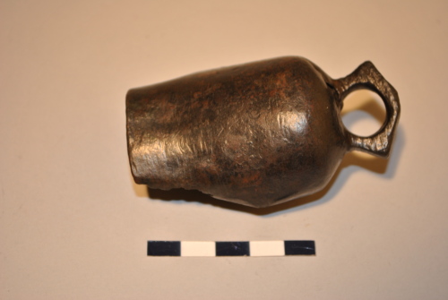 Campanello di forma cilindrica con presa poligonale.