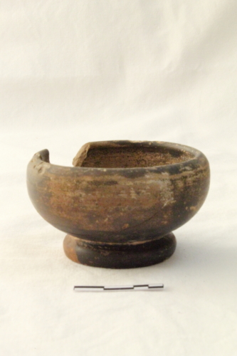 Il reperto presenta un piede ad anello, corpo a profilo emisferico, orlo indistinto e labbro leggermente entroflesso e assottigliato.