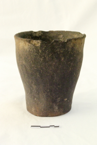 Il reperto presenta un piede a disco, corpo a profilo troncoconico svasato superiormente, orlo indistinto leggermente estroflesso e labbro assottigliato.