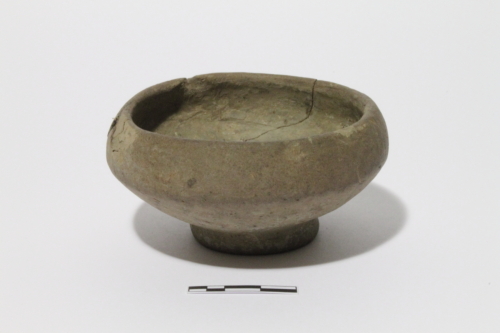 Il reperto presenta un piede ad anello internamente umbonato, corpo a profilo emisferico schiacciato, orlo entroflesso e labbro arrotondato.