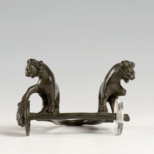 La statuetta raffigura la parte anteriore di un carro, dalla forma affusolata e snella, decorata da due leonesse, appoggiate alle ruote anteriori, purtroppo oggi in parte mutile.