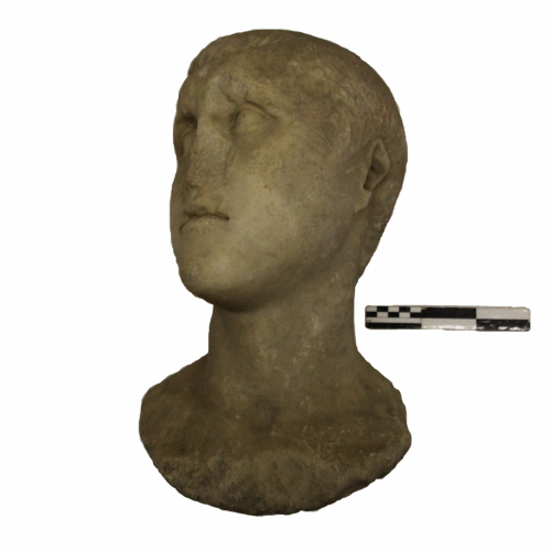 La testa ritrae una figura maschile, dal volto dall'ovale allungato, rivolto verso destra e appena inclinato a portare lo sguardo verso l'alto. La fronte è stretta e di forma irregolare, le arcate soppraccigliari, rese con un delicato cambio di piano, ombreggiano appena i grandi occhi, da cui traspare una vaga tensione e una pacata malinconia. Il naso è per la gran parte abraso, tanto da comprometterne la lettura, mentre in parte conservata è la bocca dalle labbra sottili chiuse ad accentuare l'impressione di intensa concentrazione. L'acconciatura è costituita da corte ciocche lavorate mediante l'utilizzo dello scalpello. Esse si dispongono in un ciuffo irregolare sopra la fronte, mentre sono rade ai suoi lati.