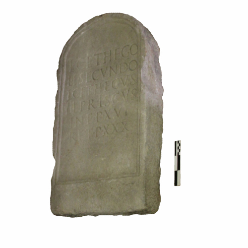 - ISCRIZIONI centrale nello specchio epigrafico - L(ucio) Cethego/ L(uci) F(ilio) Secundo/ L(ucius) Cethegus L(uci) L(ibertus) Priscus/ in f(ronte) p(edes) XVI/ ret(ro) p(edes) XXX - lettere capitali - Incisione - latino