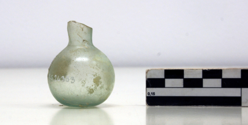 Balsamario con collo cilindrico e corpo sferoidale con piccola base piana.