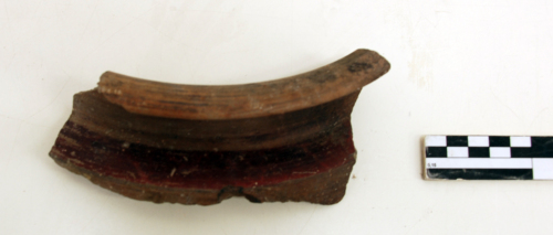 argilla/ a tornio/ rivestimento esterno rosso e nero/ decorazione a fasce