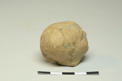 testina di giovanetto o bambino, molto rozza, con treccia di capelli sulla sommità del capo e treccina raccolta posteriore