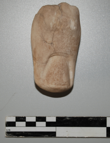 Alluce di piede pertinente a una statua di dimensioni maggiori del naturale.