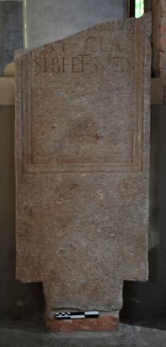 - ISCRIZIONI sullo specchio epigrafico - [Luc] retius / A(uli) f(ilius) Cla(udia tribu) / sibi et sueis - lettere capitali - a incisione - latino