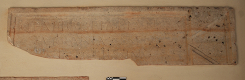 Fronte di sarcofago con iscrizione sepolcrale all'interno di una tabula ansata.