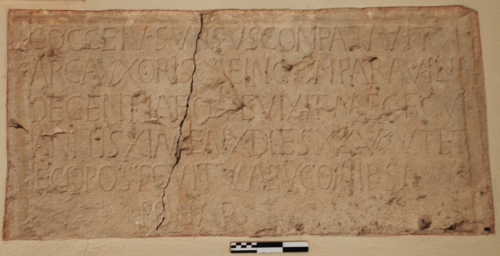 - ISCRIZIONI sul fronte della cassa - Cocceius Ursus conparavit / arca uxori suae inconparavili / decentiae que vixit mececv(m) / annis XI men(ses) X dies XXV ut et / ego post ovitu meu / con ipsa ponar - lettere capitali - a incisione - latino
