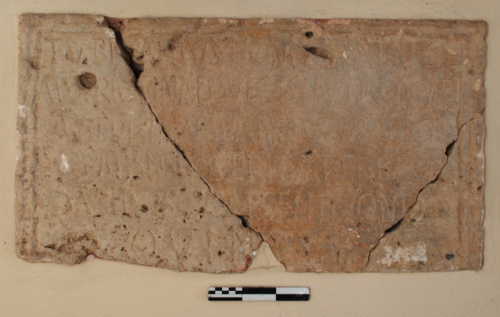- ISCRIZIONI sul fronte della cassa - Turranius Honoratus / Aur(eliae) Iovinae dulcissimae compar(i) / quae vixit mecum annos X menses II / si quis ea[m] voluerit aper[i]re / dabit fisco argenti pondo / quinque - lettere capitali - a incisione - latino