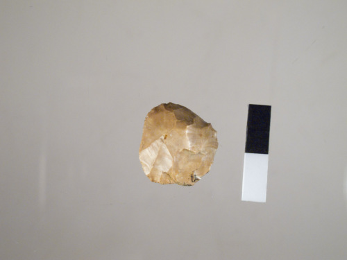 grattatoio frontale corto su scheggia; selce marrone chiaro