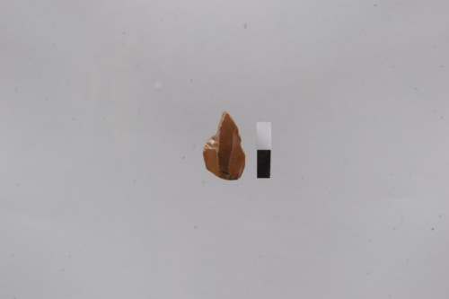 romboide allungato con troncatura obliqua rettilinea; selce di colore marrone chiaro