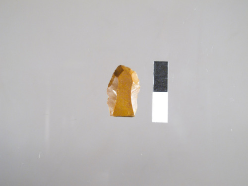 grattatoio ogivale su frammento di lamella; selce di colore marrone