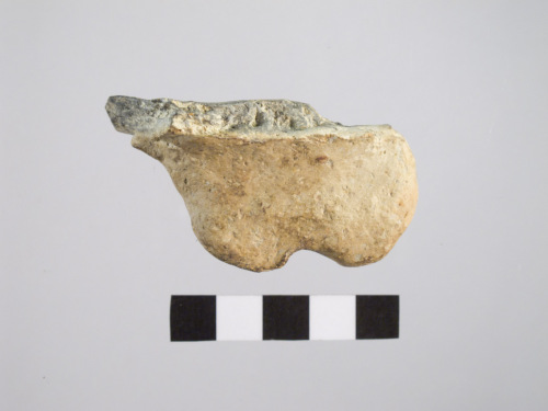 presa semicircolare decorata con una intaccatura mediana digitale; superfici lisciate di clore camoscio (esterna) e grigia (interna)