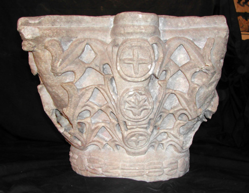 Capitello imposta increspato, con semifoglie erette e intrecci; sulle sporgenze, tralci lavorati a giorno, intrecciati alternativamente; gli ultimi sono decorati all'interno con foglie o stelle. Una delle sporgenze è invece decorata da tre cerchi posti l'uno sopra l'altro, ciascuno con all'interno, rispettivamente, una croce, una foglia a palmetta e una croce. Si tratta di una rilavorazione di età medievale che ha interessato anche il collarino, ornato con una nastro orizzontale di foglie a doppi petali oblunghi.