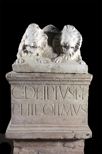 - ISCRIZIONI all'interno dello specchio epigrafico - C(aius) Deipius P(ubli) f(ilius) / Philotimus - lettere capitali - a incisione - latino