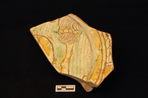 ceramica ingobbiata graffita e dipinta sotto vetrina (piatto/ frammento ceramica graffita rinascimentale)