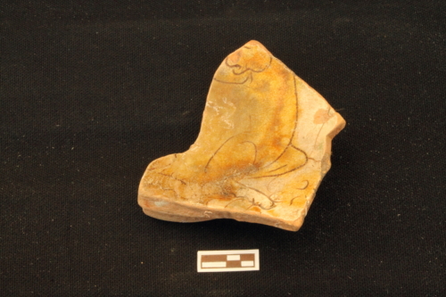 ceramica ingobbiata graffita e dipinta sotto vetrina (scodella/ frammento ceramica graffita rinascimentale )