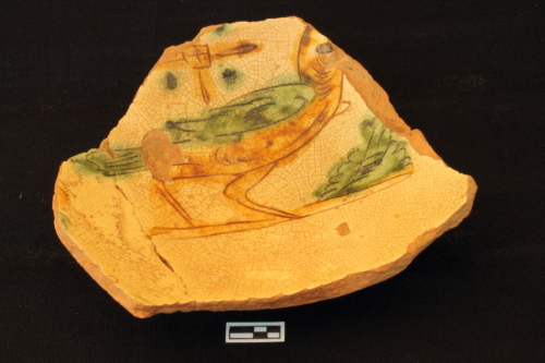 ceramica ingobbiata graffita e dipinta sotto vetrina (scodella/ frammento ceramica graffita rinascimentale)