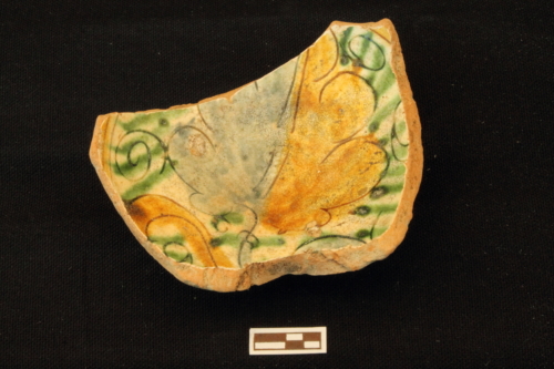 ceramica ingobbiata graffita e dipinta sotto vetrina (scodella/ frammento ceramica graffita post-rinascimentale)