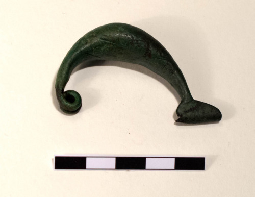 Fibula a sanguisuga con staffa corta. Fibula con corpo piuttosto massiccio, e staffa molto corta e asimmetrica. Presenta una decorazione incisa e impressa nella fascia dorsale, con fasce alternate con lineette incise a coppie in obliquo.