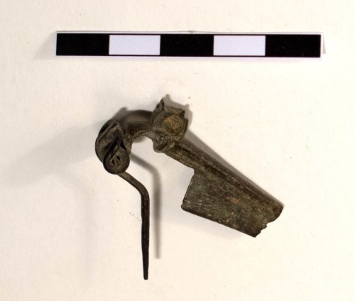 Fibula a molla, con staffa corta, e decorazione presso la molla.