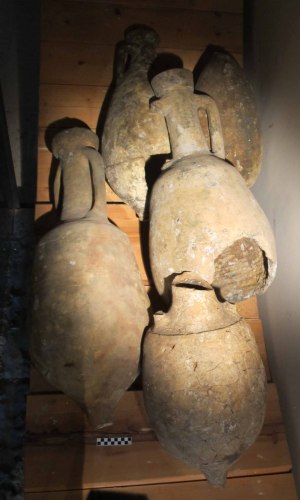 Anfora olearia tipo Dressel 6b, mancante di orlo, collo e anse. L'anfora Dressel 6b è caratteristica per l'orlo a calice, rotondo, leggermente estroflesso. La forma del corpo è ovoidale, e si conclude con un puntale pieno, con bottone di chiusura.