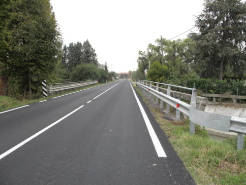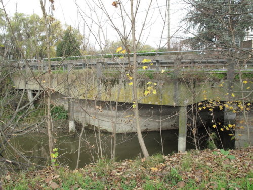 ponte a canna quadra con spalle e aumento della sezione trasversale con impalcato su pali in cemento armato con parapetto "a giorno" e guardrail, passaggio asfaltato.