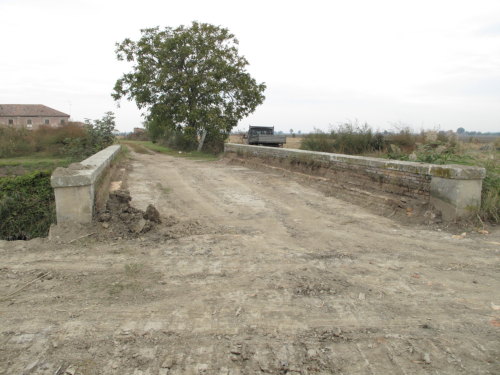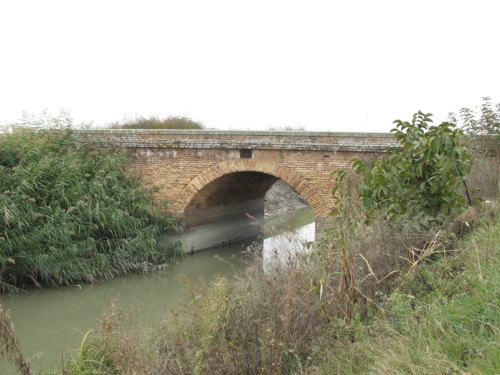 ponte in muratura continua a vista a canna ad arco a tutto sesto con parapetti pieni, pianta rettangolare con passaggio in terra.