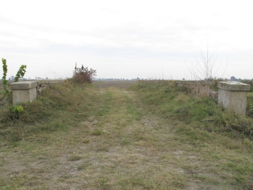 ponte in muratura continua a vista a canna ad arco a tutto sesto con parapetti pieni, pianta rettangolare con passaggio in terra.