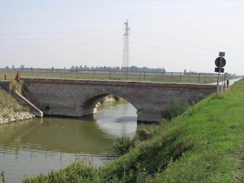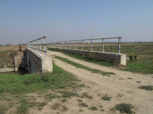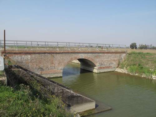ponte in muratura continua a vista, a canna ad arco a tutto sesto con parapetti in ferro, pianta rettangolare con passaggio in terra.
