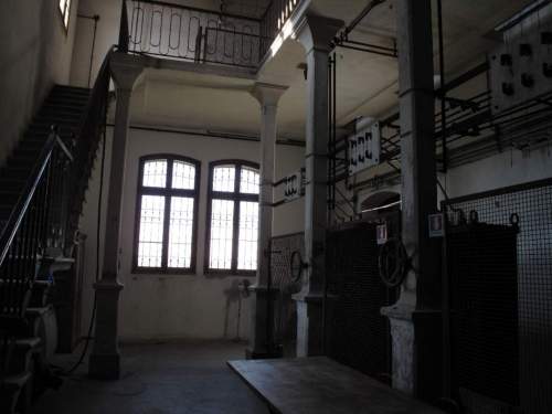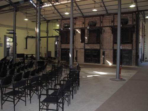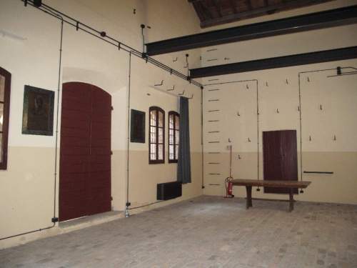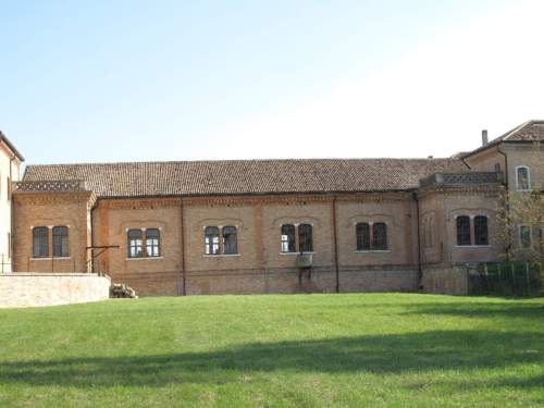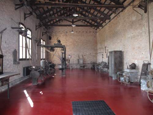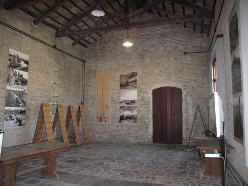 parte di edificio del complesso del Museo Regionale della Bonifica, struttura principale a "T" formato da più volumi regolari con murature continue in laterizio a vista con forometrie arcuate seriali, coperture a tetto in coppi di laterizio.