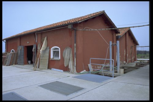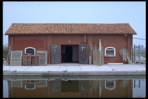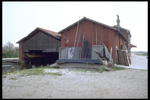 edificio di forma rettangolare formato da due corpi; il primo, verso Nord, è situato sul canale e il secondo, verso Sud, poggia sul terreno; muratura in mattoni intonacati; copertura a tetto