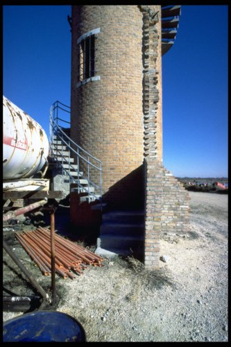 edificio di forma circolare con muri perimetrali in mattoni; copertura piana