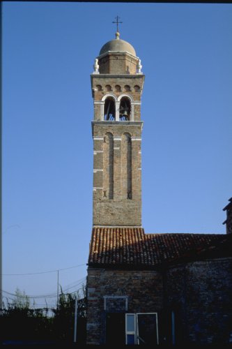 costruzione di forma quadrata, muri perimetrali in mattoni a vista, percorsa da nervature, cella campanaria con bifora su ogni lato, cupoletta tonda della cuspide poggiante su base ottagonale; di coronamento quattro pilastrini di pietra viva